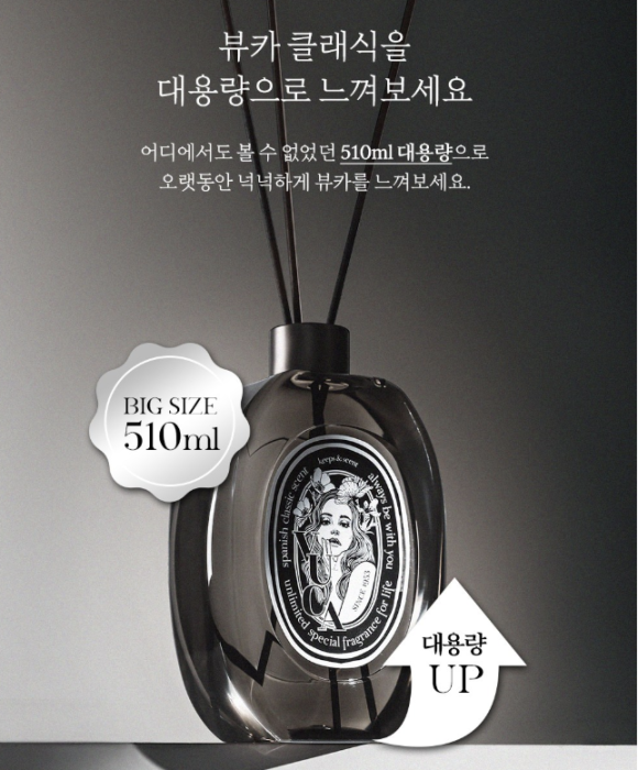 뷰카 센트 클래식 디퓨저는 대용량 구성이라 작은 사이즈보다 훨씬 오래 사용 가능해요.