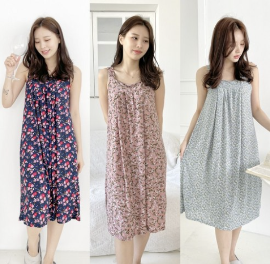 한 줄 요약: 시원한 냉감 원단 + 가벼운 끈나시 디자인 + 로맨틱 플라워 패턴으로, 땀 많고 더운 여름밤에도 보송하고 산뜻한 착용감을 선사하는 여름 원피스잠옷입니다.