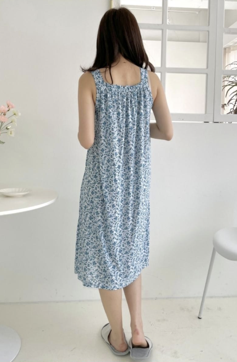 플라워 민소매 끈나시 잠옷: 냉장고 냉감 원피스 홈웨어로 여름밤 쾌적하게