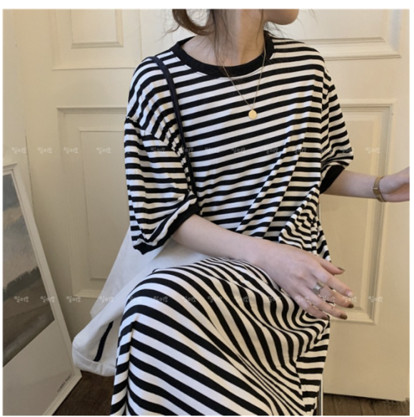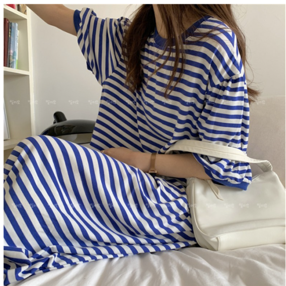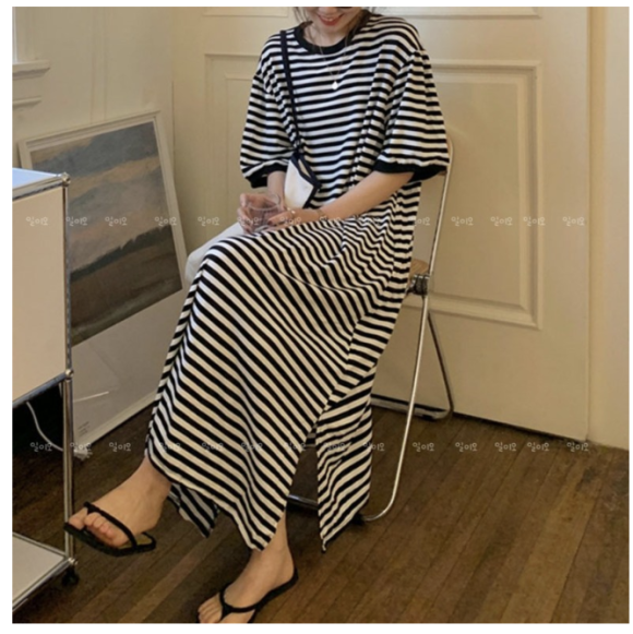 심플한 듯 포인트 있는 스트라이프 단가라 패턴은 언제 입어도 깔끔하고 세련돼 보여요. 특히 원피스 하나만 입어도 스타일링이 완성되니, 바쁜 아침이나 휴가철에도 부담 없이 입기 좋습니다. 운동화, 슬리퍼, 샌들 등 어떤 신발과도 잘 어울려 데일리룩 코디가 쉬워요.