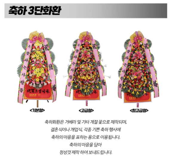 졸업, 개업, 결혼 등 기쁨의 순간, 단순한 꽃바구니보다 화려한 화환이 주는 존재감은 남다릅니다.