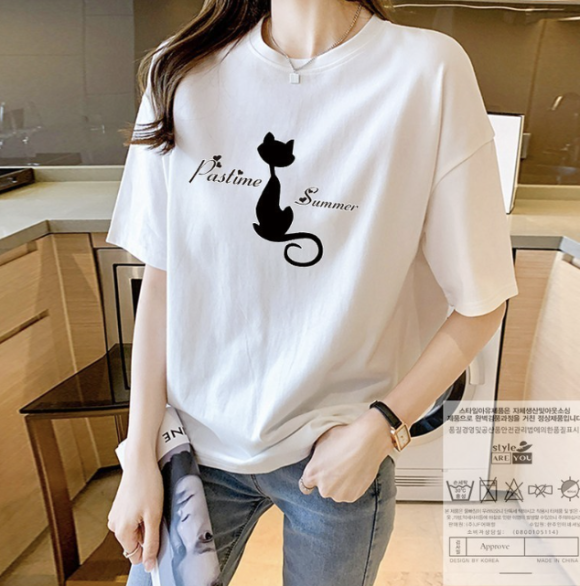 오버핏 면100% 고양이 반팔티 – 편안하고 센스있는 데일리룩