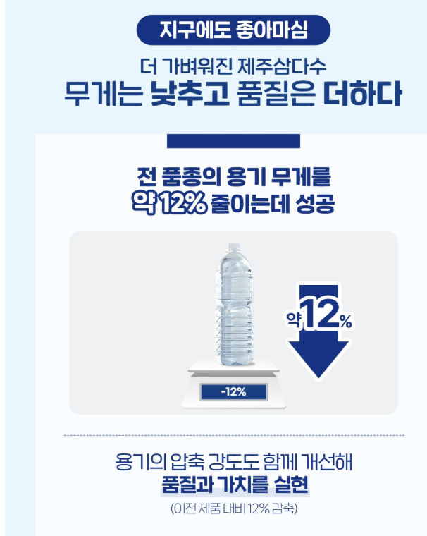 삼다수는 제주도 청정지하수로 만든 물이라 맛도 깔끔하고 부드러워요.