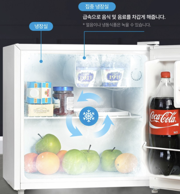 마이디어 미니 냉장고 44L는 소형 냉장고임에도 균일한 냉각 성능을 제공합니다. 음료를 빠르게 차갑게 하고, 작은 공간이기 때문에 냉기가 잘 유지됩니다.