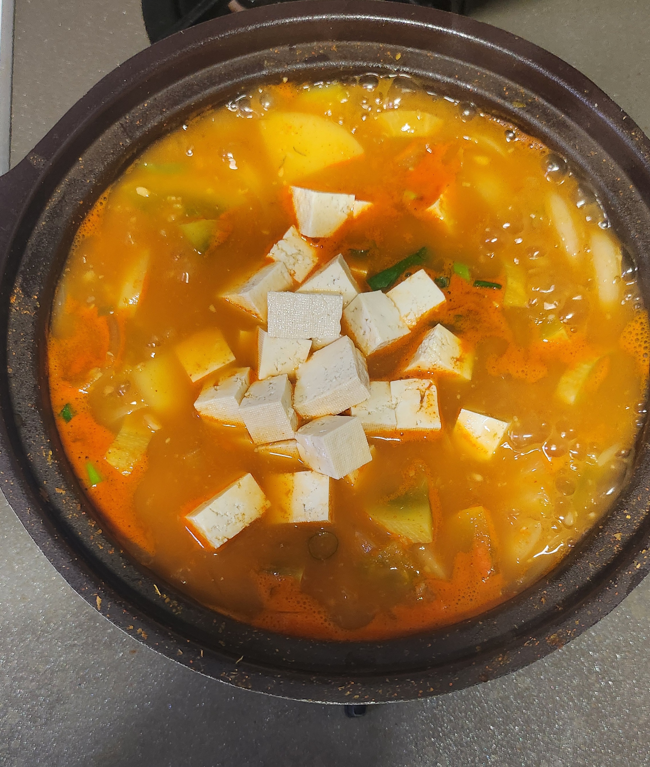 감자 두부 호박 양파넣고 맛된장 2스푼 넣고 집에서 끓여먹었는데 맛은 굿~