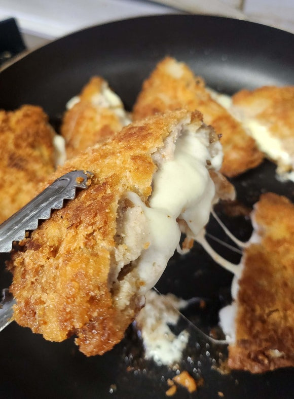 돈카츠 속에 모짜렐라 치즈가 듬뿍 들어 있어서, 한입 베어 물면 치즈가 쭉 늘어나요. 겉은 바삭하게 튀겨지고 속은 부드러워서, 냉동식품치고 식감이 꽤 만족스러웠습니다. 개인적으로는 냉동식품이라 전자레인지에 3분 해동후 후라이팬에 튀겨서 먹었어요~ 맛은 굿