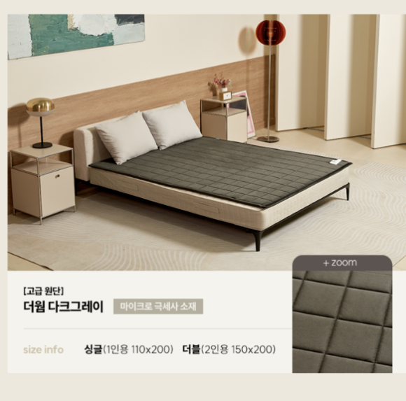 커버가 분리되어 세탁이 가능해 위생 관리가 쉽습니다. 또한 두께가 두껍지 않아 접거나 보관할 때도 부담이 적습니다. 디자인은 심플하면서도 모던한 패턴이라 어떤 인테리어에도 잘 어울립니다.