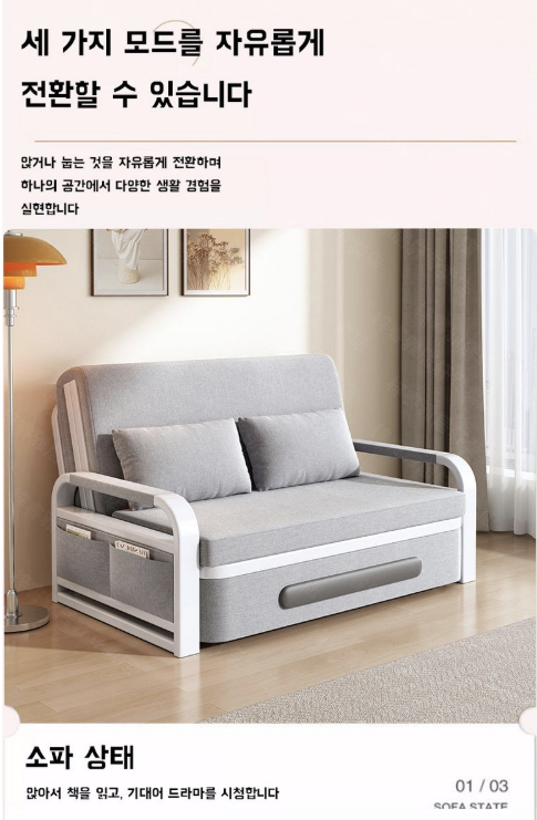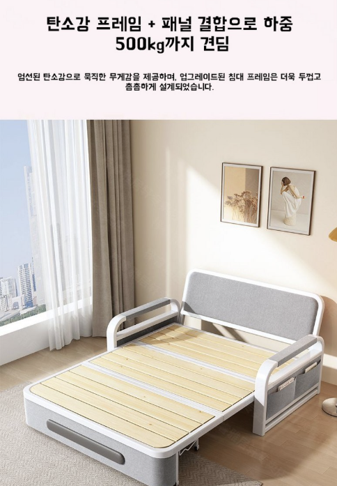 접이식 소파베드는 작은 공간에서도 활용도 높음이 장점입니다. 손님이 올 때는 간단히 침대로 펼쳐서 사용 가능하며, 사용하지 않을 때는 소파로 접어 공간을 확보할 수 있어 멀티 기능 가구를 찾는 분들에게 적합합니다.