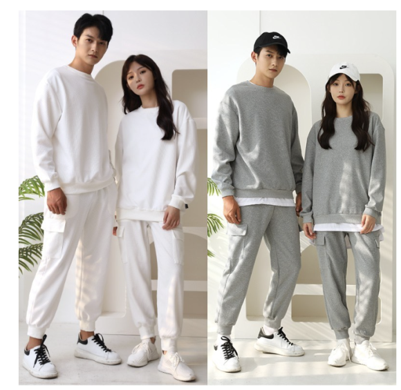 편안하면서도 꾸민 듯한 룩을 찾는다면 와플 오버핏 맨투맨 + 카고 조거팬츠 세트가 딱이에요.