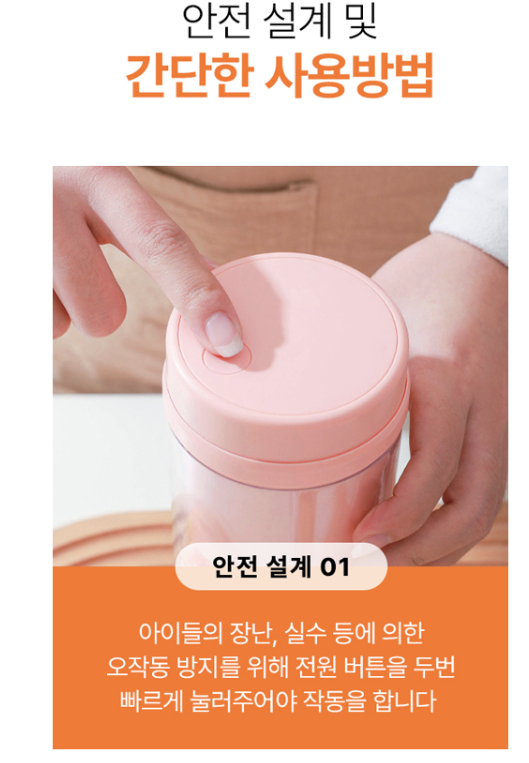 또한 휴대용 뚜껑과 안전장치가 있어 사용 중 흘림 걱정 없이 안전하게 사용할 수 있습니다. 주스, 스무디, 프로틴 쉐이크 등 다양한 레시피에 활용할 수 있어, 1인 가구나 운동하는 분들에게 특히 추천하는 제품입니다.