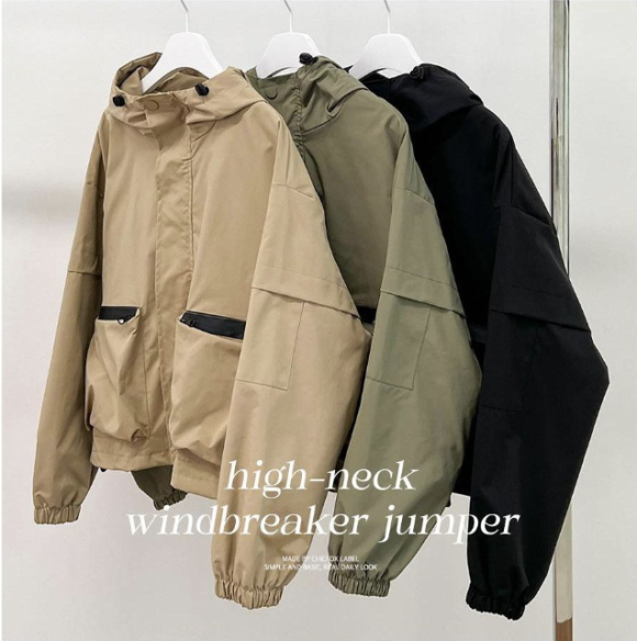 그중에서도 요즘 눈에 들어온 게 바로 더블지퍼 하이넥 바람막이 점퍼예요.