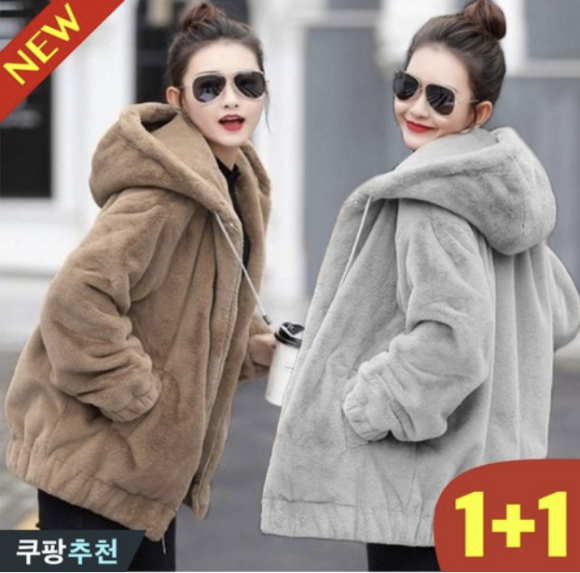 ❄ 포근함이 다른 겨울 필수템, 빅사이즈 여성 기모 후드 집업 플리스 자켓