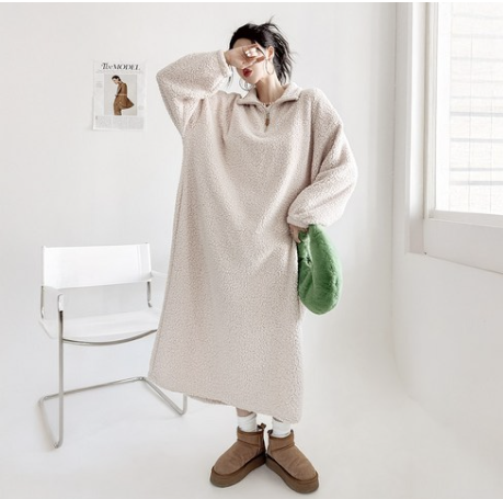 이번에 보게 된 보아양털 반집업 덤블 뽀글이 오버핏 후리스 롱 원피스는,