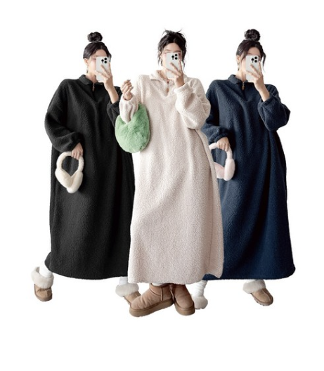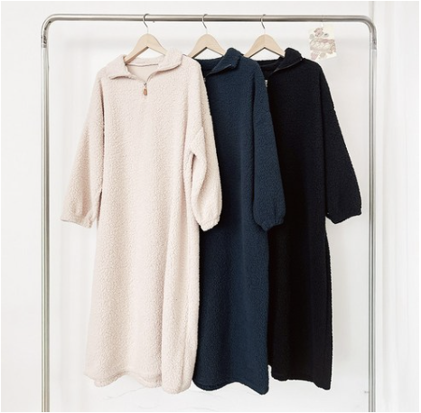 겨울엔 이런 옷이 딱, 보아양털 반집업 덤블 롱 원피스