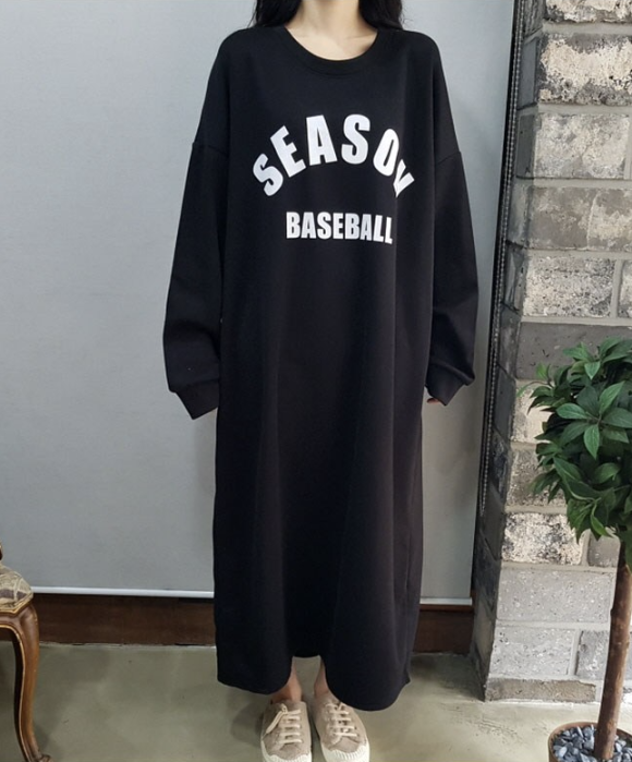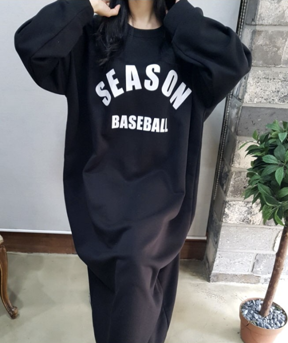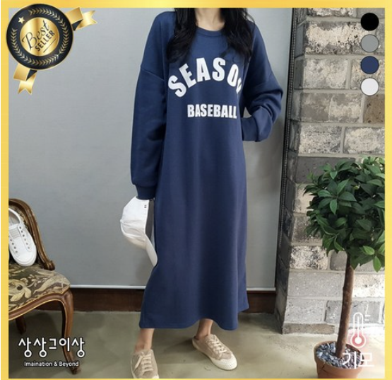 편안하면서도 센스 있게, 국내제작 기모 오버핏 베이스볼 롱원피스