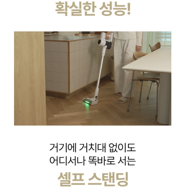 또 하나 눈에 띄는 점은 셀프 스탠딩 기능이에요. 청소 도중에 벽에 기대거나 눕힐 필요 없이, 어디에나 세워둘 수 있어 사용 중에도 편하고 보관도 깔끔합니다. 구성품도 다양하게 포함되어 있어서 바닥용, 틈새용, 침구용 등 상황에 맞게 헤드를 교체해 사용할 수 있습니다. 작은 먼지부터 넓은 공간 청소까지 모두 커버 가능한 실속형 구성입니다.