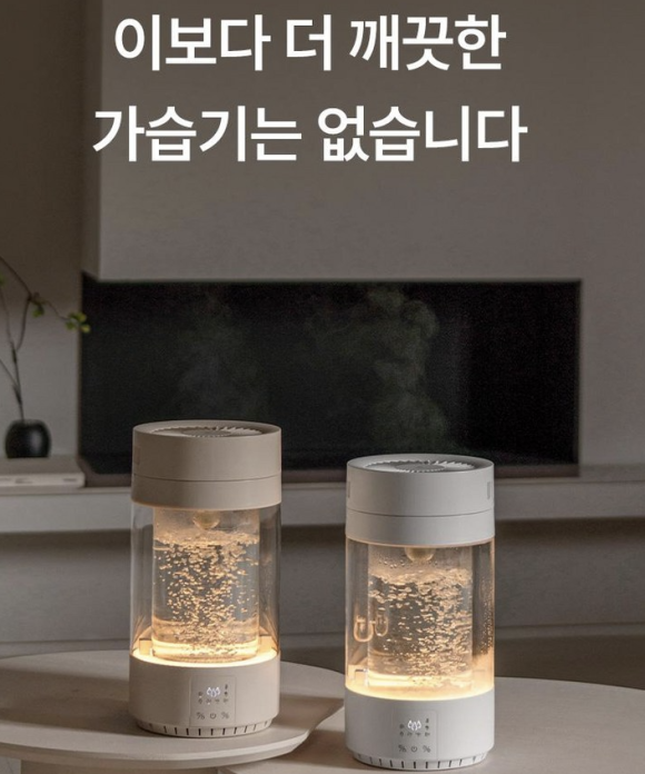 이 제품의 가장 큰 특징은 이름에서도 느껴지듯 110도 고온 살균 시스템이에요. 물을 끓이면서 살균하기 때문에, 일반 초음파 가습기보다 훨씬 위생적이에요. 내부가 유리 재질로 되어 있어서 세척이 간편하고, 물 상태를 한눈에 확인할 수 있다는 점도 실용적입니다. 보기에도 맑고 투명한 물멍 감성이 느껴져, 인테리어 소품처럼 분위기 있는 무드등 효과까지 더해줍니다.