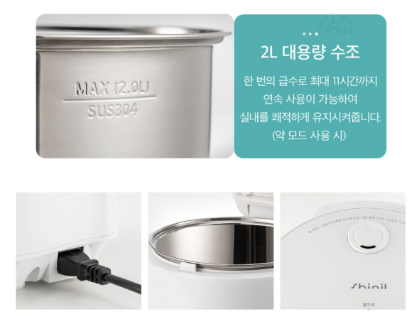 또한 스팀 자체가 따뜻해 난방과 함께 사용할 때 실내 온도감까지 부드러워지는 느낌을 주며, 작은 방부터 거실까지 다양한 공간에서 활용하기 좋습니다.