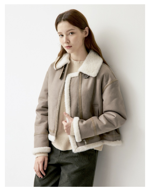 겨울에 활용도 높은 하이넥 디자인의 무스탕 자켓