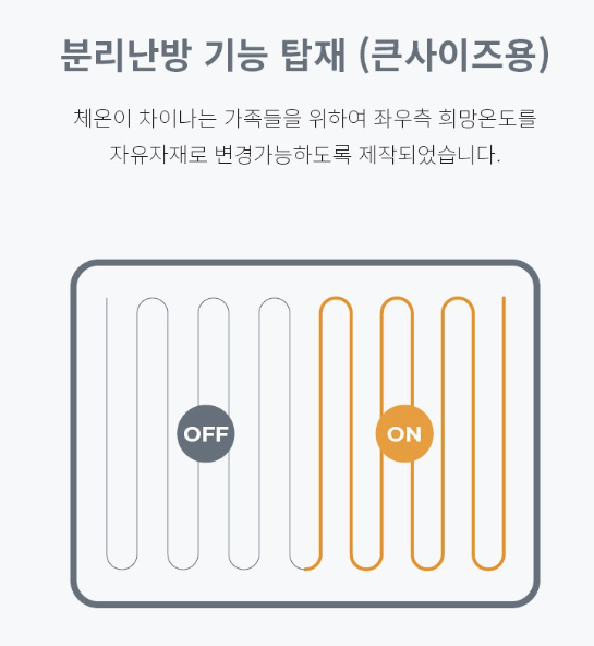 온돌마루 전기매트는 바닥 난방 환경에 맞게 열이 비교적 고르게 전달되도록 설계된 구조를 적용했다. 특정 부분만 과도하게 뜨거워지는 방식이 아니라, 바닥 전체에 온기가 퍼지는 느낌을 고려한 형태로 난방 보조 용도로 사용하기 적합하다.