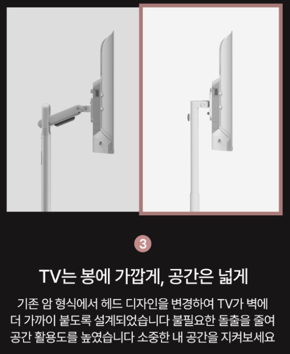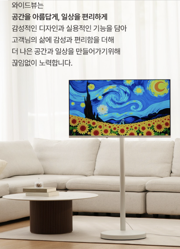 이런 특징 덕분에 TV를 한 자리에 고정해 두기 부담스러운 환경이나, 인테리어 변경 가능성을 열어두고 싶은 경우에 잘 어울리는 구성이다.