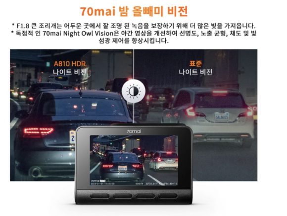 또한 70mai A810-2는 호환성이 높아 다양한 승용차와 SUV에 무리 없이 설치할 수 있어요. 복잡한 설정 없이 기본적인 주행 기록 기능에 충실하면서도, 필요한 기능은 충분히 갖춘 블랙박스를 찾는 분들에게 잘 맞는 제품이에요.