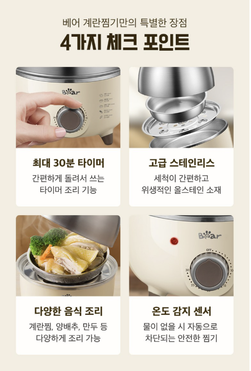 계란찜기 구매를 고민 중이라면 용량, 소재, 세척 방법, 타이머 기능 등을 함께 확인해보는 것이 좋습니다. Bear 올스텐 다용도 7구 계란찜기는 기본적인 기능에 충실하면서도 활용도가 넓은 제품군에 속합니다. 아침 식단 관리나 간편 조리를 원하시는 분들은 자신의 사용 패턴에 맞는지 살펴본 뒤 선택해보시길 바랍니다.